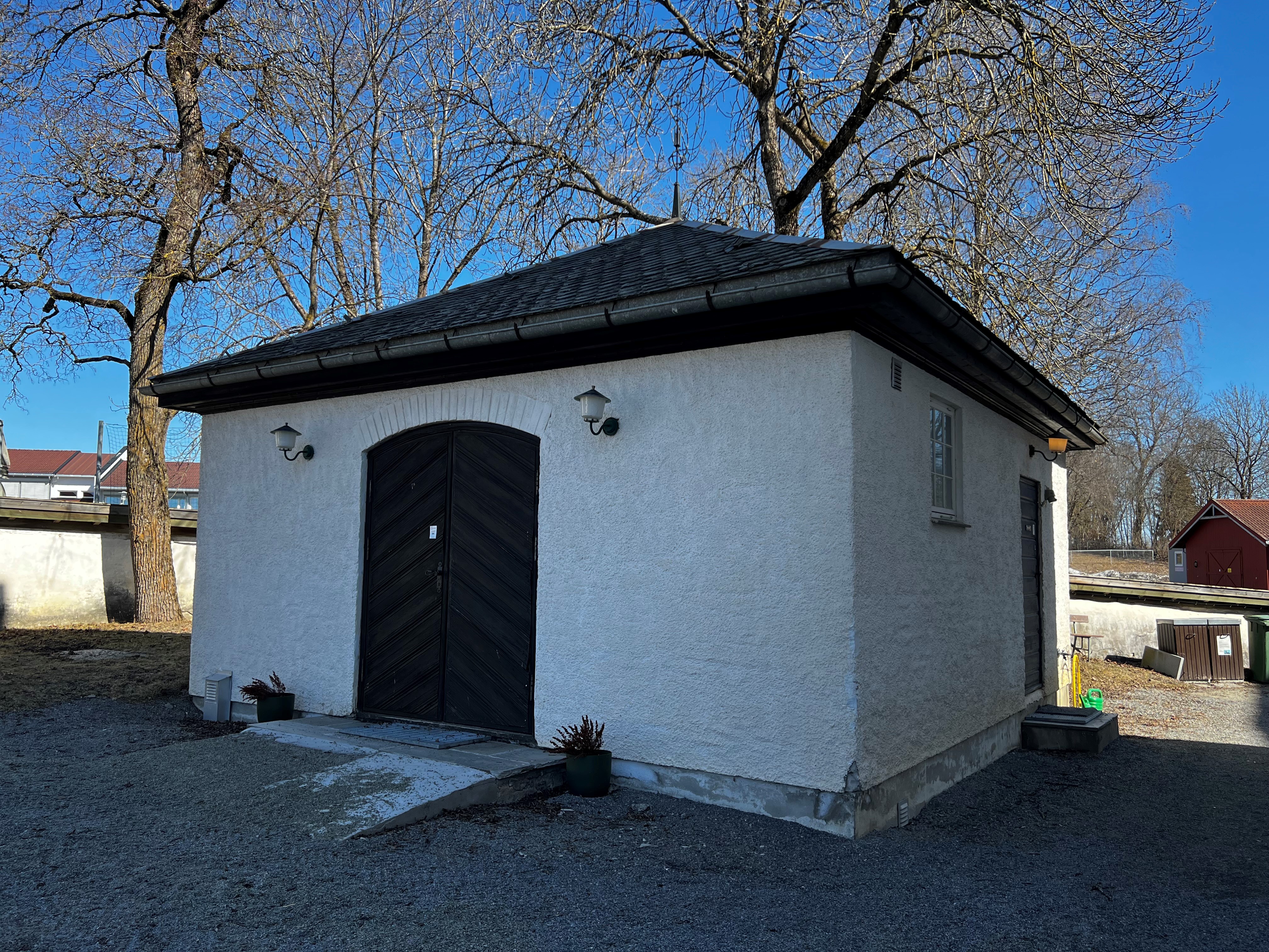 I Bårehuset har også kirketjener et kontor/ utstyrsrom.